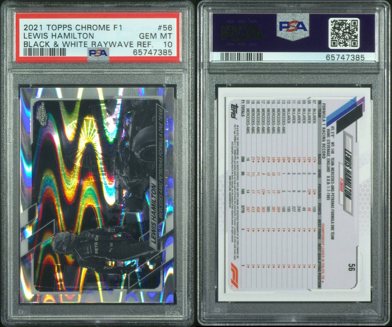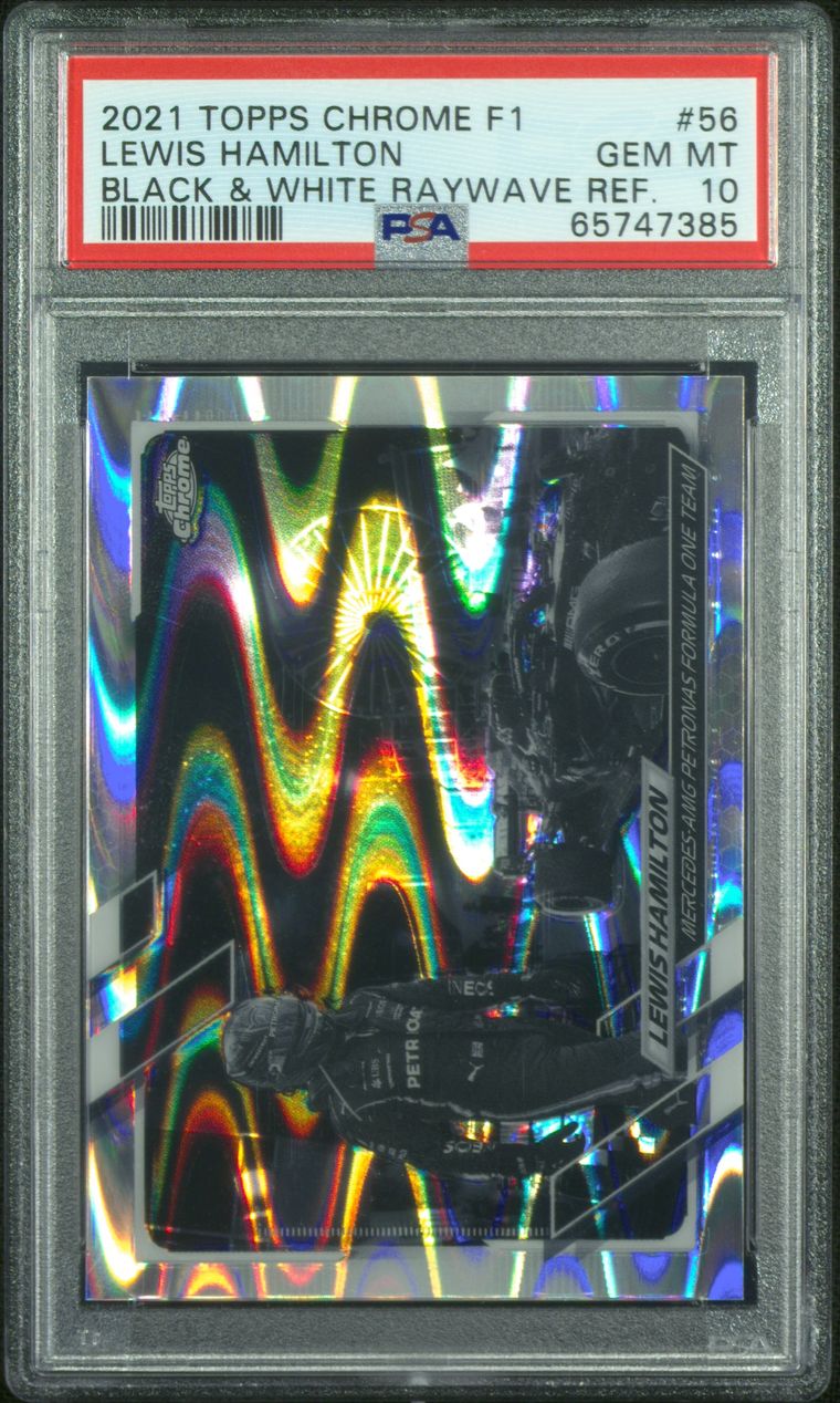Lewis Hamilton 2021 Topps Chrome F1 #56 B&W Raywave Refractor Hamchella PSA 10