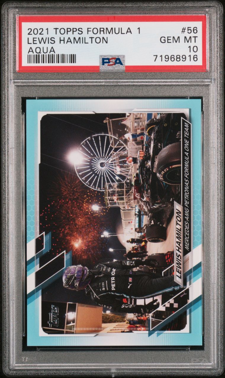 Lewis Hamilton 2021 Topps F1 #56 Hamchella 169/199 Aqua PSA 10 Gem Mint